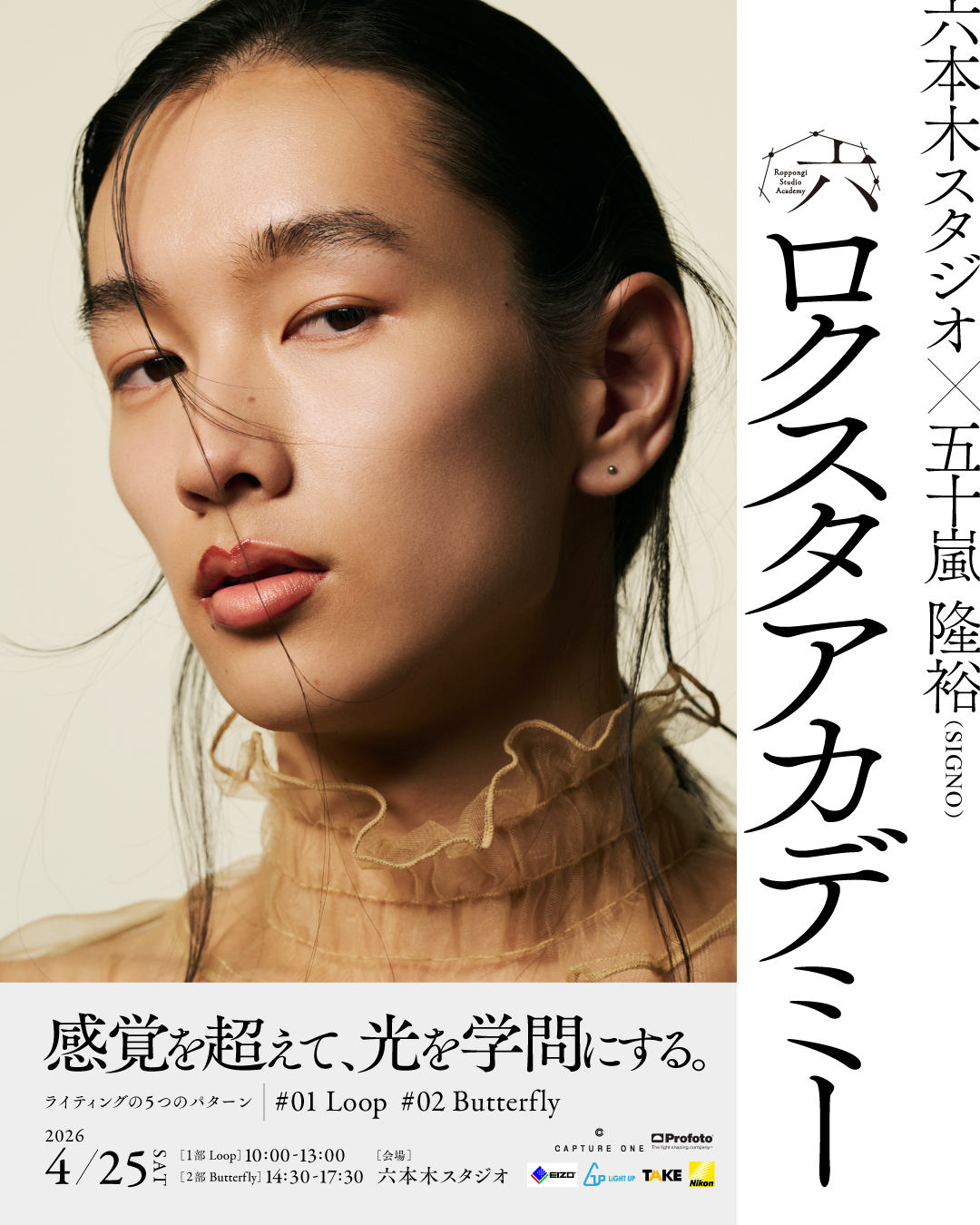 六本木スタジオと五十嵐隆裕(SIGNO)による写真教育プロジェクト「ロクスタアカデミー」の第2回開催が決定いたしました。 第2回テーマ:Loop × Butterfly 今回は、ポートレートライティン
